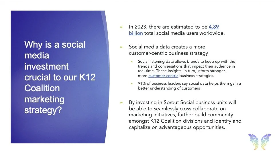 Below is the social media strategy deck I presented to the K12 Coalition enterprise team, outlining our strategic approach to building brand authority, engaging key audiences, and driving meaningful community engagement across industry platforms.